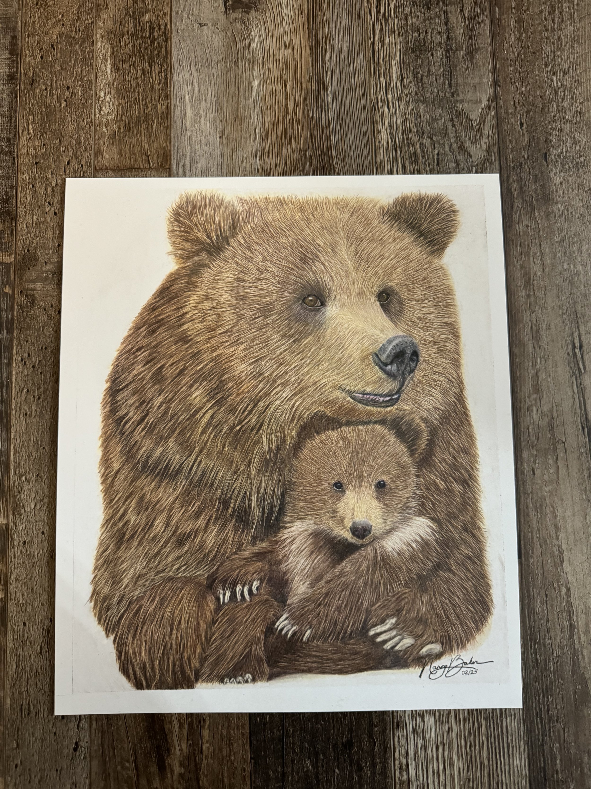 When I draw a mother bear curled around her cubs, or two siblings resting together, or a dog caught mid-laugh—there’s something in those moments that feels both personal and universal. It’s a reminder that love exists in the wild. That tenderness lives everywhere, even in the wilderness. And through art, I get to share that softness with others.